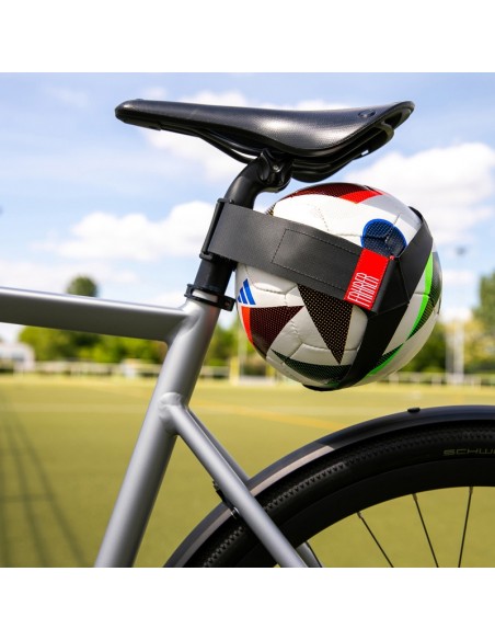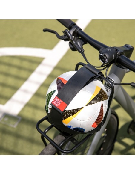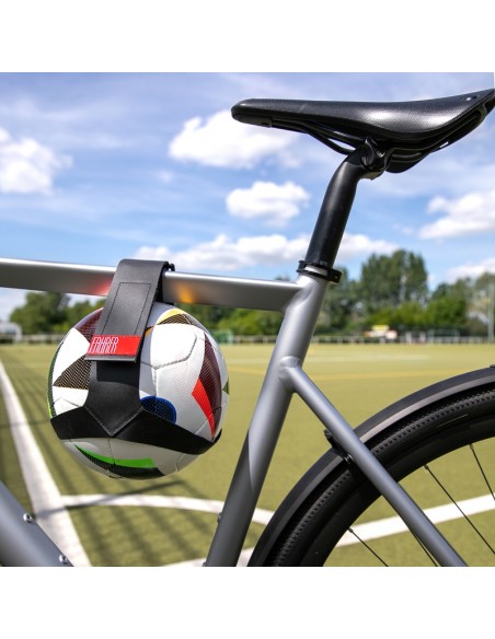 Der einzigartige Velo-Ballhalter. Mit diesem Ballhalter wird der Transport zum Einsatzort zu einer runden Sache.