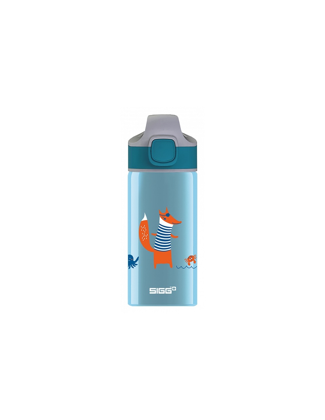 Schlaufüchse wissen, warum dieser Fuchs im Piratenlook mit Krabbe und Tintenfisch unterwegs ist. Falls nicht, dann sollte man es schnell herausfinden und die Kinder-Trinkflasche von SIGG in fröhlichen Farben in die Schultasche packen.