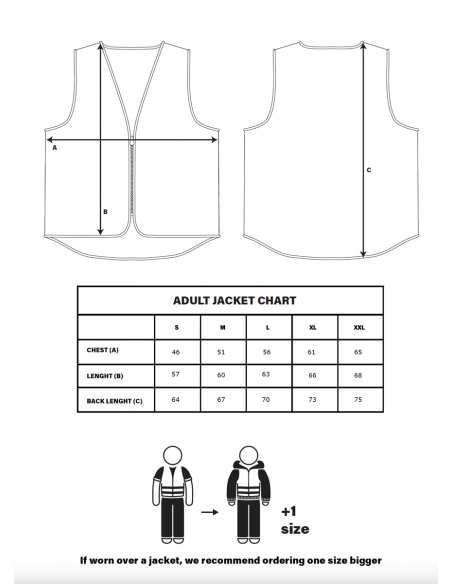 Vollständig reflektierende Weste, mit Label für Licht und anpassbar durch Klettverschluss.