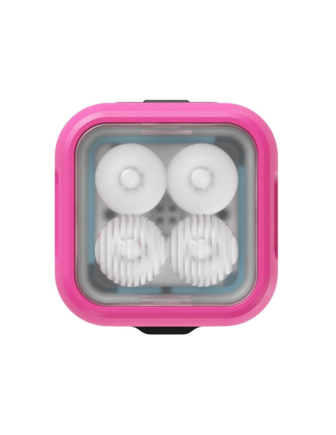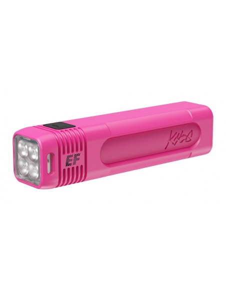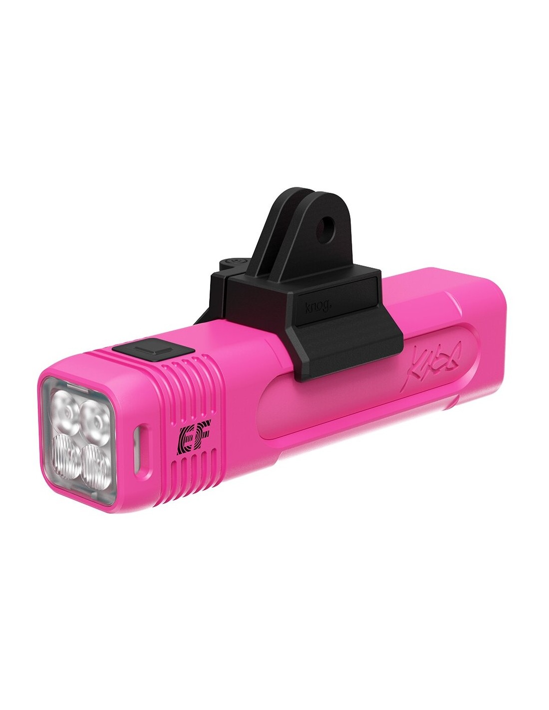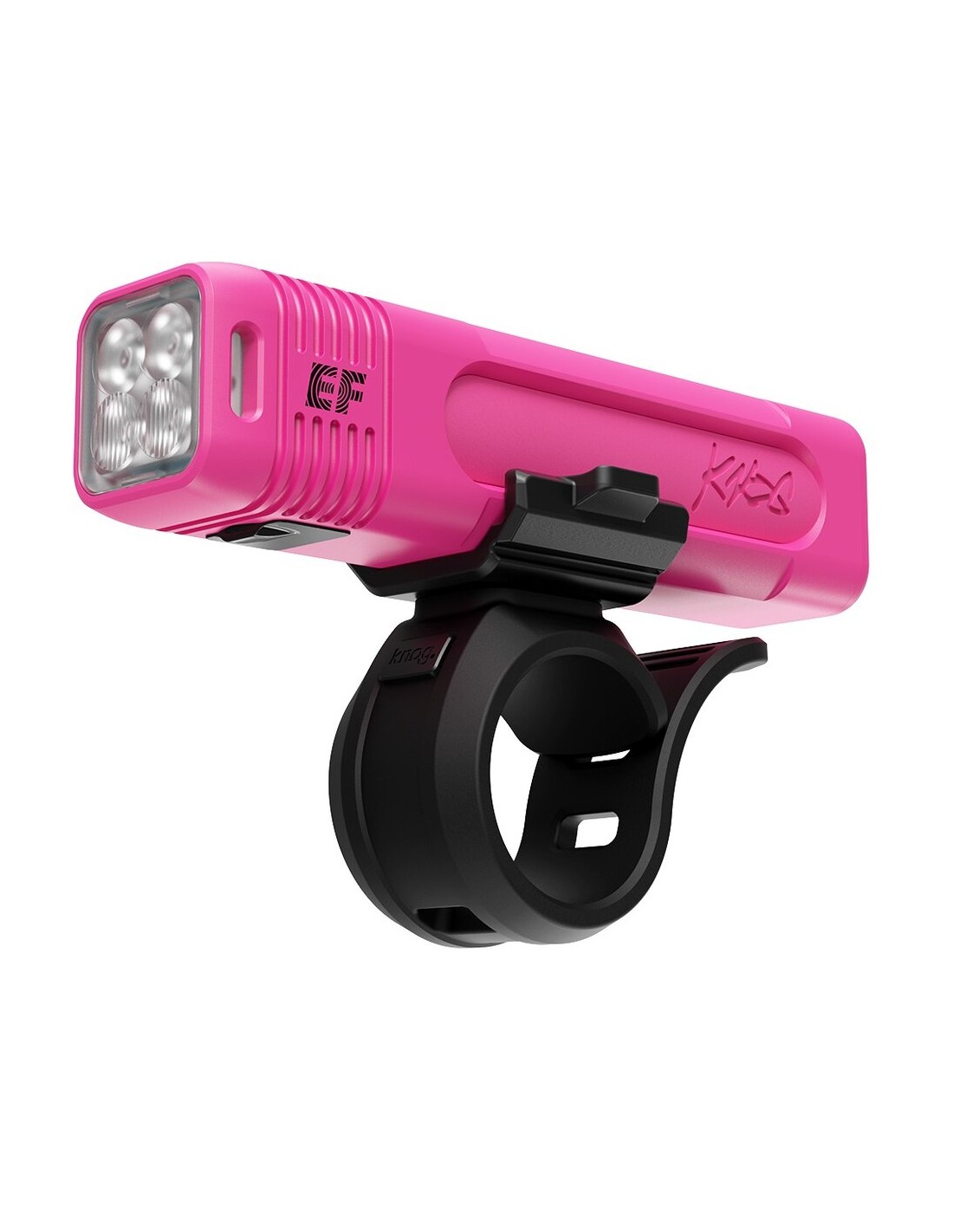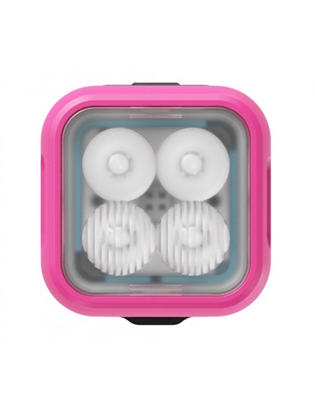 Limitiertes, potentes, freches Meisterstück einer Fahrradlampe mit frischem Pink eloxiert und dreidimensionaler Lasergravur.