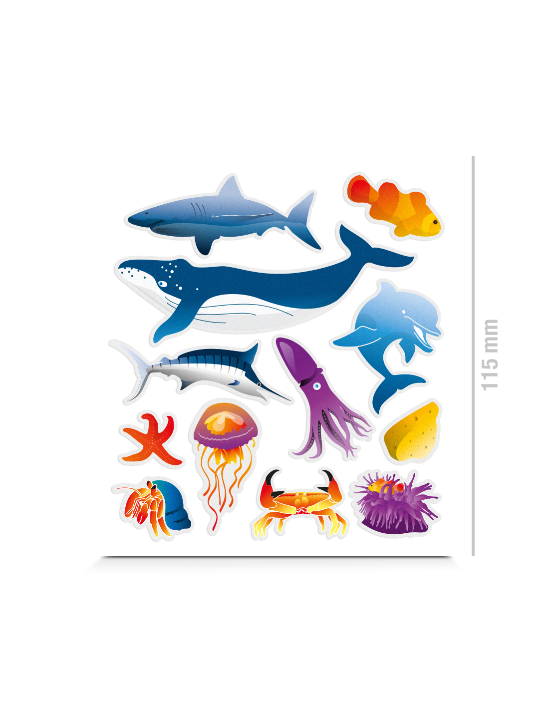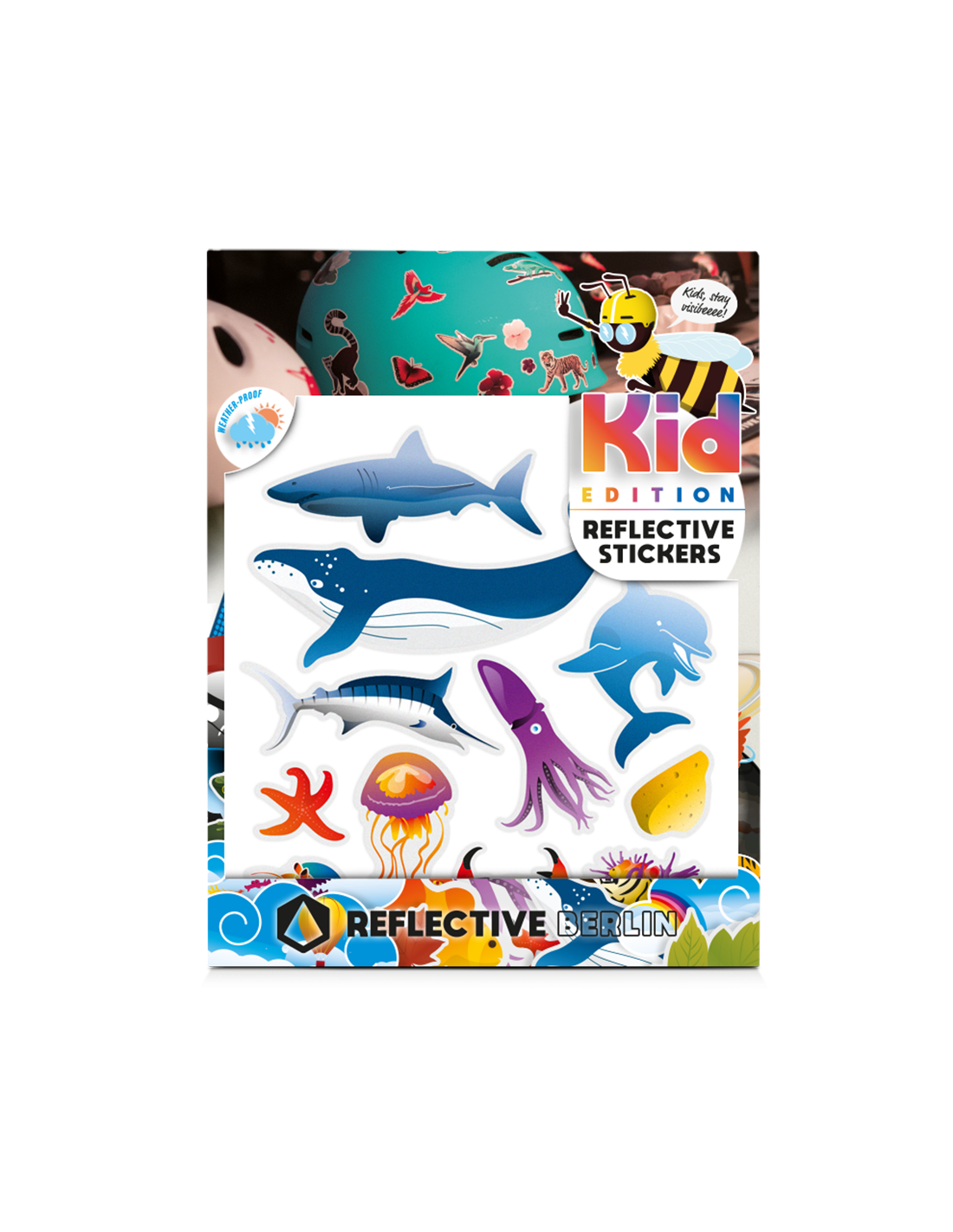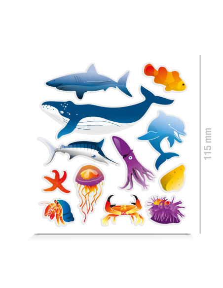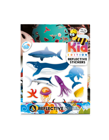Weitere zauberhafte Meeresbewohner finden sich in diesem thematischen Sticker Kit bestehend aus 12 reflektierenden Aufklebern: Weißer Hai, Buckelwal, Qualle, Seestern, Annemonen, Clownfisch, Schwertfisch…