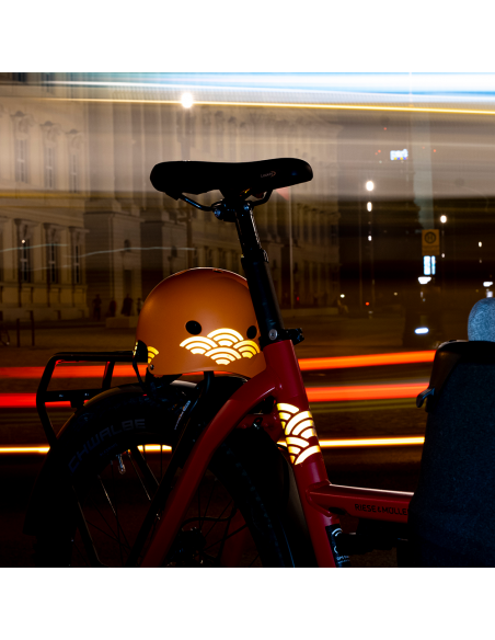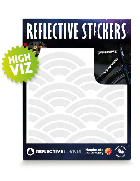 Die Sticker bestehen aus einer reflektierenden Folie aus dem Verkehrssicherheitsbereich, die für Warnmarkierungen, Verkehrszeichen und Hinweisschilder im Außenbereich eingesetzt wird. Die Reflexfolie erfüllt die Anforderungen nach EN12899-1 und zeichnet sich durch Langlebigkeit sowie absolute Witterungs-, Korrosions- und Lösungsmittelbeständigkeit aus. Temperaturen von -50° bis +80° Celsius machen dem Material nichts aus.
