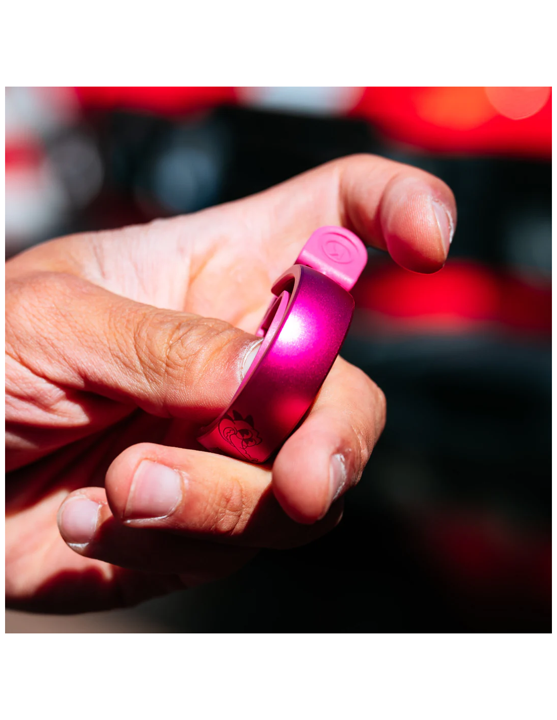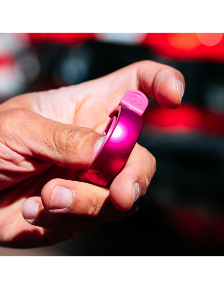 Limitierte Auflage der Klingel in frecher, auffälliger Farbe und aussergewöhnlichem Design. Jedes Stück kommt in metallischem pink eloxiert zur Feier der Kooperation mit den Profi-Teams von EF Education.