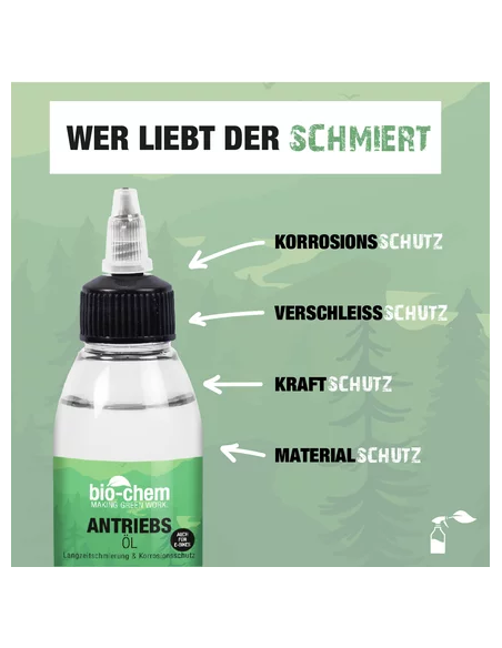 Bio-Chem Huile de chaîne 100 ml. Offre une protection optimale contre la corrosion et l'usure grâce à son effet lubrifiant et glissant élevé.