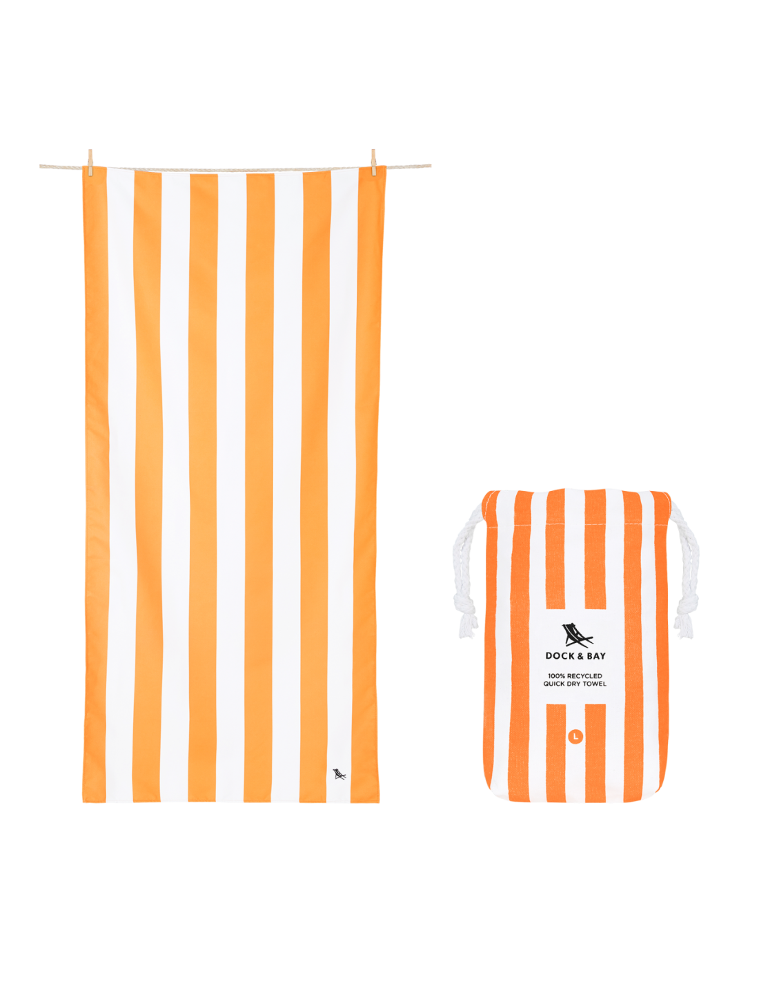 Les serviettes de bain Dock & Bay sont fabriquées à partir d'un matériau 100% polyester/polyamide recyclé, qui offre d'innombrables avantages par rapport aux serviettes traditionnelles : elles sèchent rapidement, sont très absorbantes, extrêmement légères et compactes une fois pliées, repoussent le sable et n'absorbent pas les odeurs d'humidité.