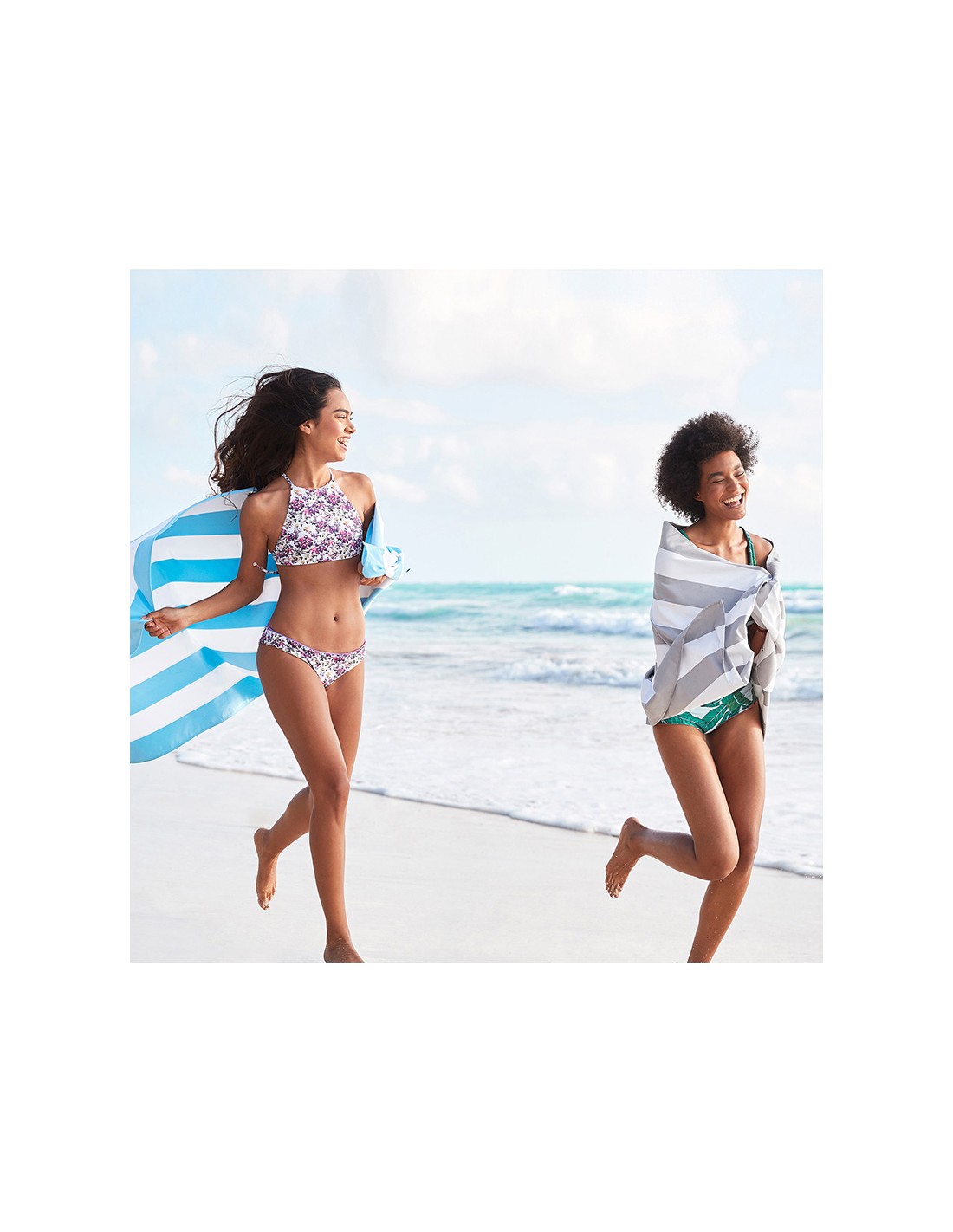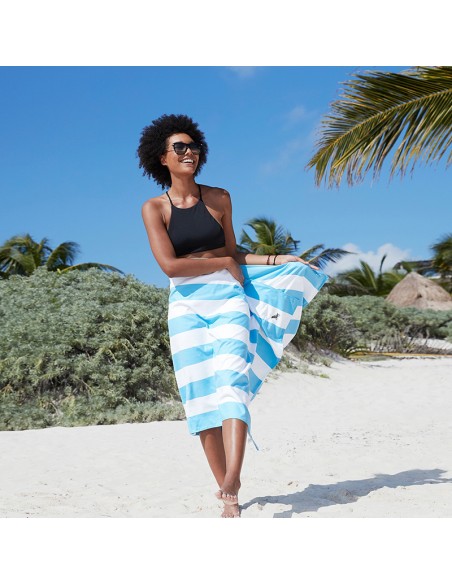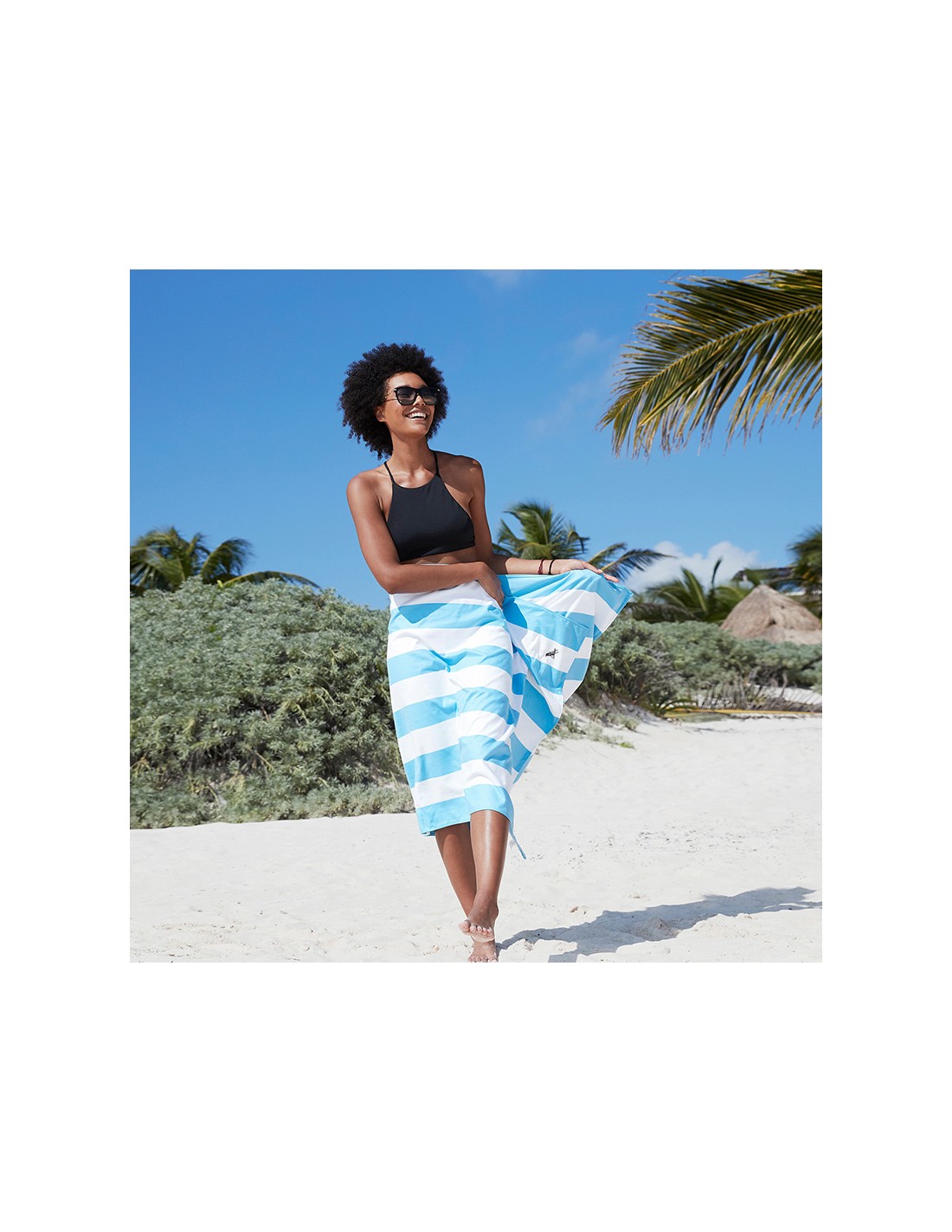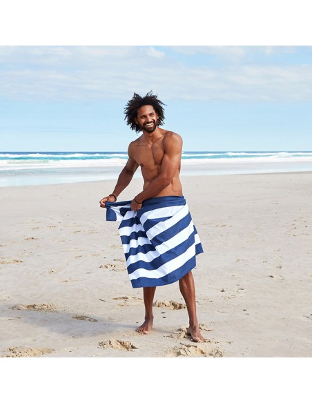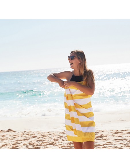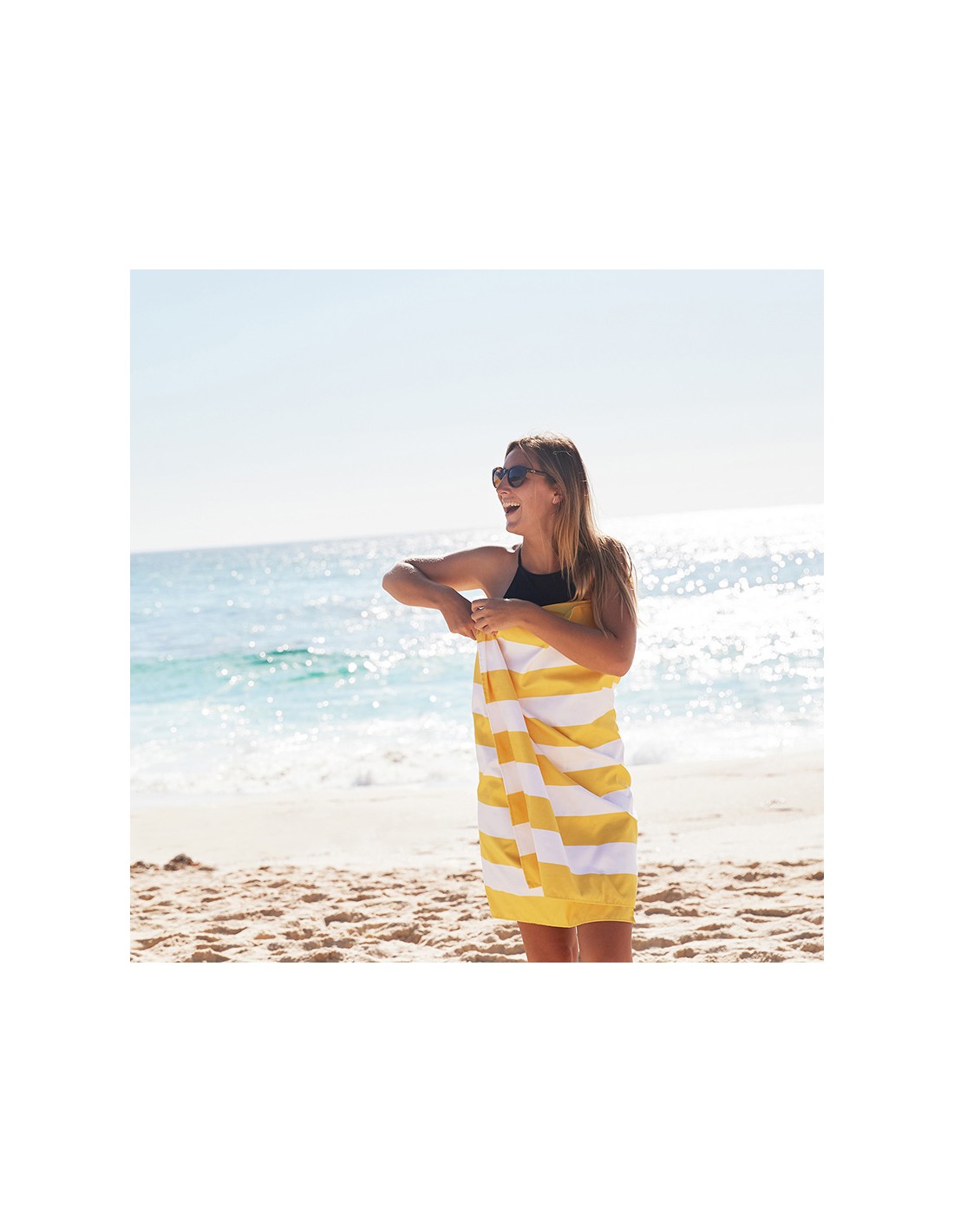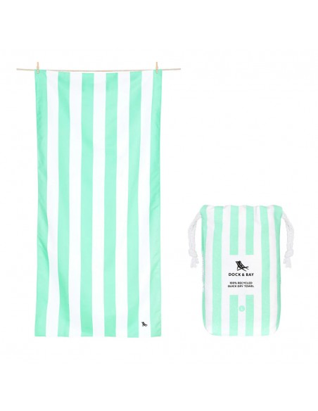 Les serviettes de bain Dock & Bay sont fabriquées à partir d'un matériau 100% polyester/polyamide recyclé, qui offre d'innombrables avantages par rapport aux serviettes traditionnelles : elles sèchent rapidement, sont très absorbantes, extrêmement légères et compactes une fois pliées, repoussent le sable et n'absorbent pas les odeurs d'humidité.
