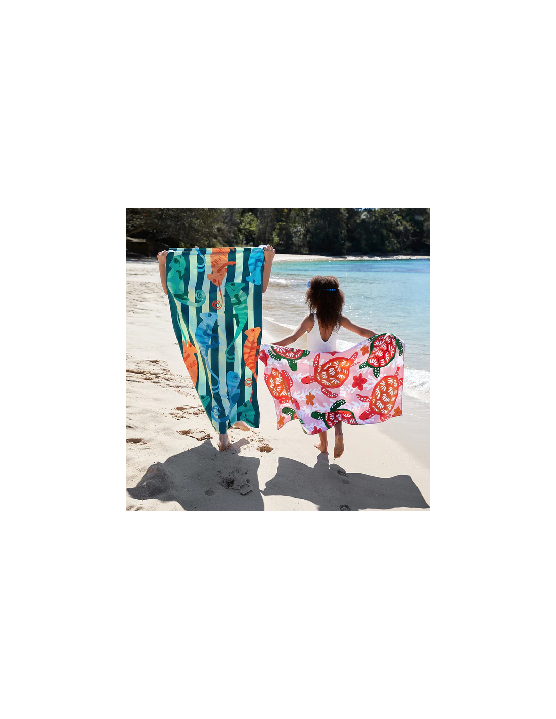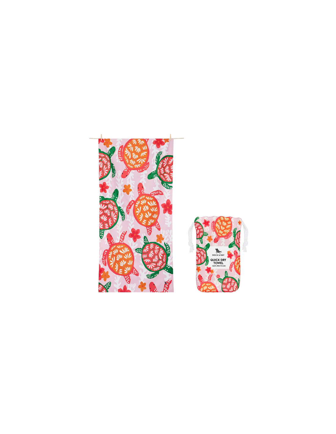 Les serviettes de bain Dock & Bay sont fabriquées à partir d'un matériau 100% polyester/polyamide recyclé, qui offre d'innombrables avantages par rapport aux serviettes traditionnelles : elles sèchent rapidement, sont très absorbantes, extrêmement légères et compactes une fois pliées, repoussent le sable et n'absorbent pas les odeurs d'humidité.