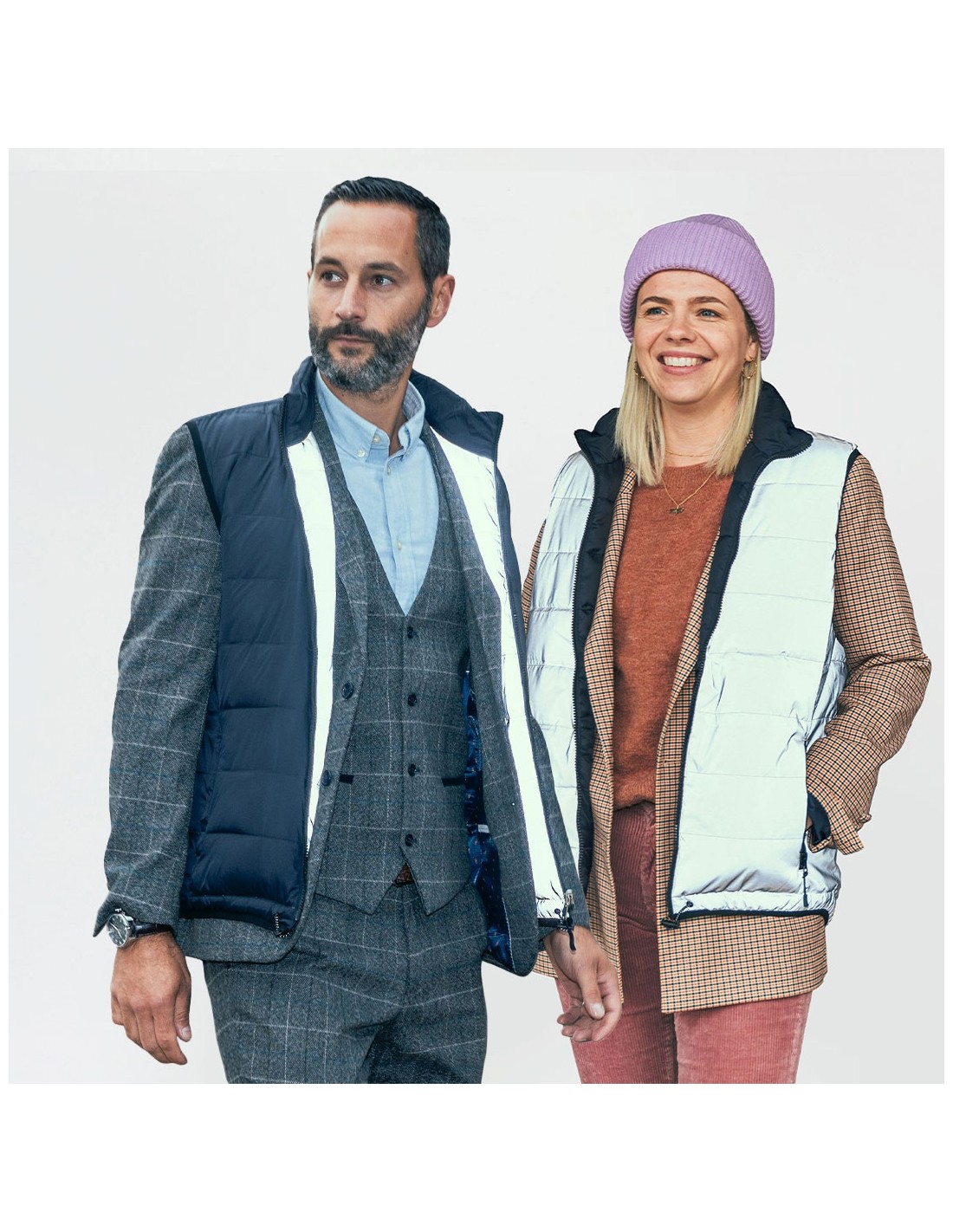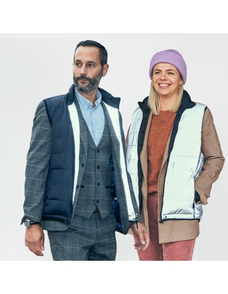 Ce gilet réversible allie à la perfection style et fonctionnalité. Élégant, il s'accorde parfaitement avec toutes les tenues, et son côté réfléchissant te rend visible dans la circulation nocturne.