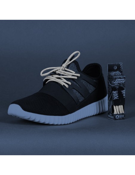 Les lacets sont fabriqués en paracorde réfléchissante et sont plutôt inusables. De plus, les valeurs de réflexion élevées de ces lacets éclipsent tout ce qui est habituellement en circulation en matière de cordons réfléchissants, car le fil réfléchissant est intégré dans des mailles très serrées.